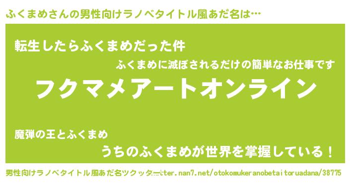 | 女子向けラノベタイトル風あだ名 | 『ふくまめ姫と円卓の騎士』 |