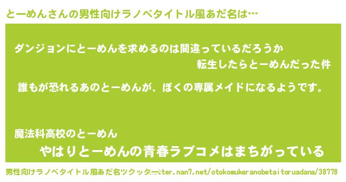 | 女子向けラノベタイトル風あだ名 | 『異世界でカフェとーめんを開店しました。』 |