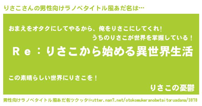 | 女子向けラノベタイトル風あだ名 | 『りさこストレイドッグス』 |