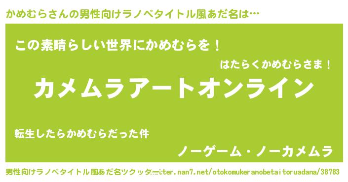 | 胡散臭い通販商品みたいなあだ名 | 『モテモテ間違いなし霊験あらたかなお札…その名も「かめむら」』 |