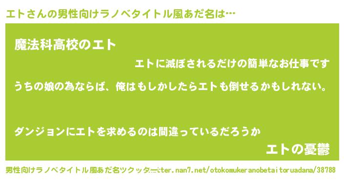 | ヘコむあだ名 | 『酢こんぶ』『エトにゅー』『エトを』 |