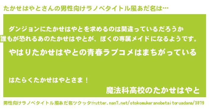 | 意味不明あだ名 | 『たかせはやとフォーエバー』 |