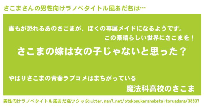 | 女子向けラノベタイトル風あだ名 | 『さこま様がみてる』 |