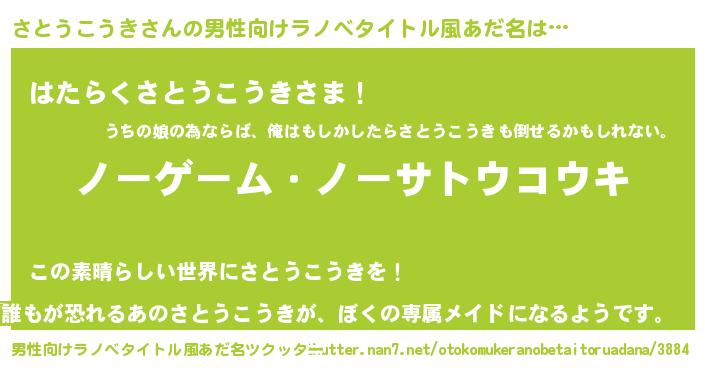 | 女子向けラノベタイトル風あだ名 | 『死神さとうこうきの再婚』 |
