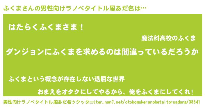 | 意味不明あだ名 | 『とにかく怪しいふくま』『自称ふくま』 |