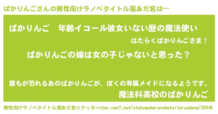 | 女子向けラノベタイトル風あだ名 | 『ばかりんご様がみてる』 |