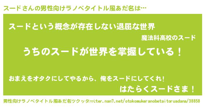 | 女子向けラノベタイトル風あだ名 | 『男装スードの憂鬱な任務』 |