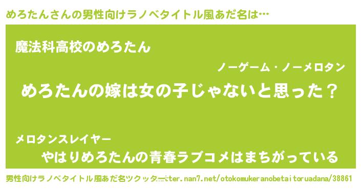 | 意味不明あだ名 | 『とにかく怪しいめろたん』 |