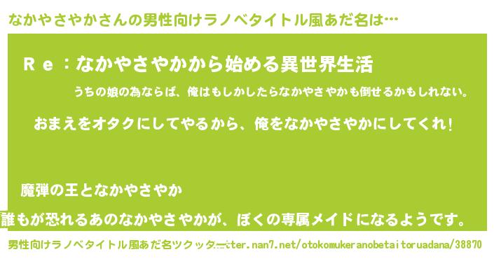 | 女子向けラノベタイトル風あだ名 | 『なかやさやか夫妻のなれそめ』 |