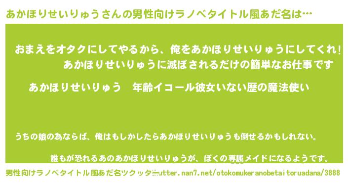 | 伝説のあだ名 | 『救世主となる占い師あかほりせいりゅう』 |