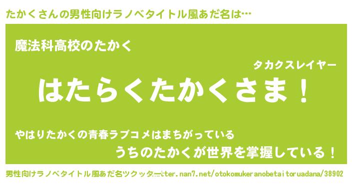 | 意味不明あだ名 | 『自称たかく』『なめこ科たかく属』 |