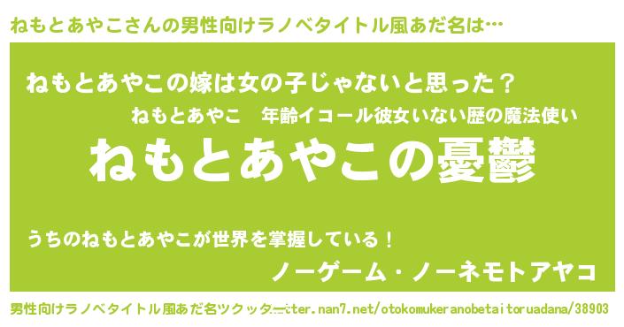 | 女子向けラノベタイトル風あだ名 | 『(仮)ねもとあやこのやんごとなき事情』 |