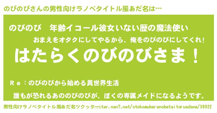 | ファンタジー風あだ名 | 『ユリノビヴァット』『ノビディッシュ』 |