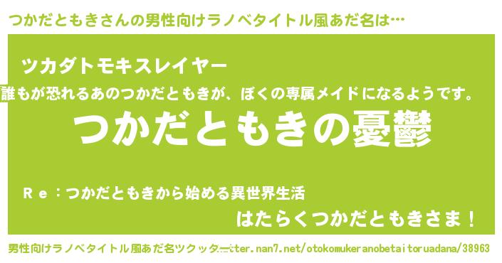 | 女子向けラノベタイトル風あだ名 | 『(仮)つかだともきのやんごとなき事情』 |