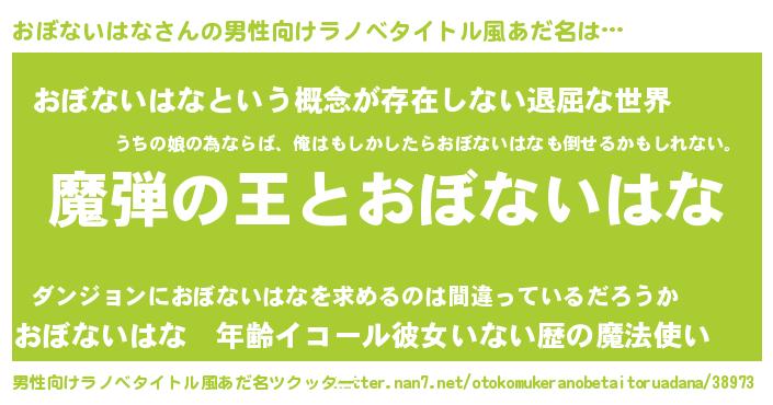 | 意味不明あだ名 | 『住所不定無職おぼないはな(81歳)』 |