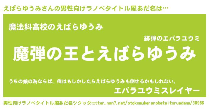 | 意味不明あだ名 | 『住所不定無職えばらゆうみ(6歳)』 |