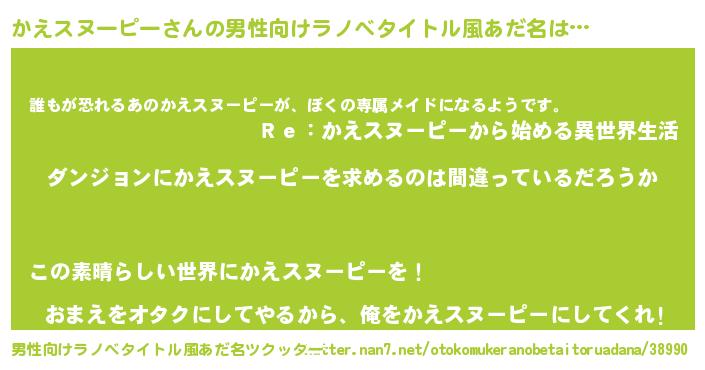 | 女子向けラノベタイトル風あだ名 | 『かえスヌーピーは平凡を望む』 |