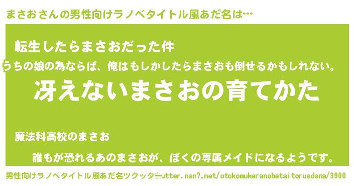 | ヒーロー風カッコイイあだ名 | 『ネオマサオ』『ウルトラまさおマン』 |