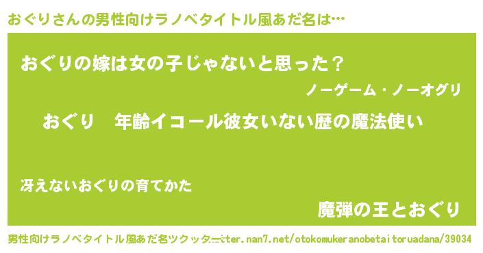 | 女子向けラノベタイトル風あだ名 | 『おぐりの玉の輿計画!』『おぐり恋絵巻』 |