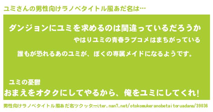 | ファンタジー風あだ名 | 『ユミディッシュ』『ファントムユミス』 |