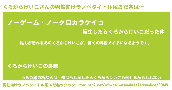 | 伝説のあだ名 | 『古文書に記された勇者くろからけいこ』 |