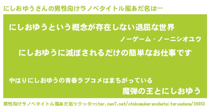 | 意味不明あだ名 | 『永久保存にしおゆう』 |