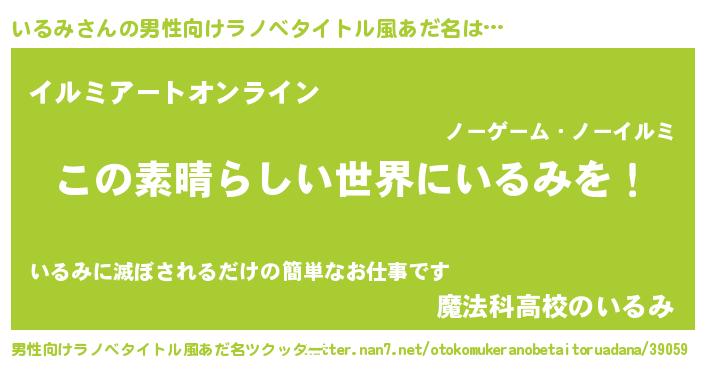 | 意味不明あだ名 | 『住所不定無職いるみ(12歳)』『自称いるみ』 |