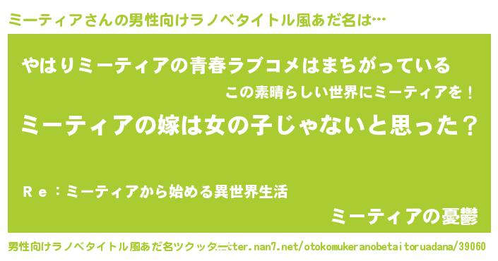 | 女子向けラノベタイトル風あだ名 | 『ミーティア様がみてる』 |