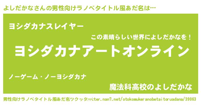 | 肩書あだ名 | 『よしだかな御曹司』『よしだかな大尉』 |