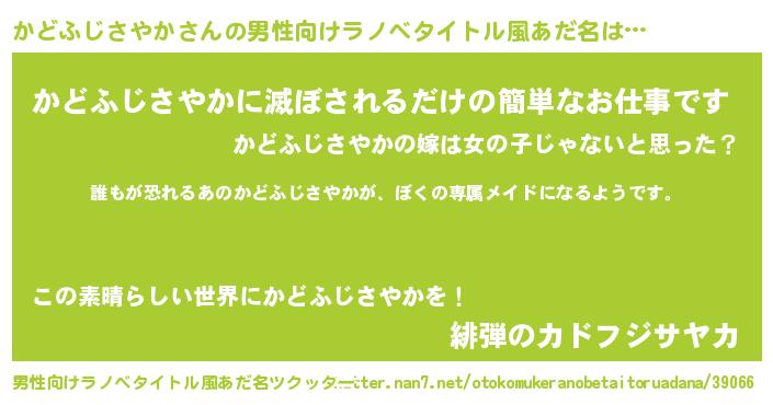 | 伝説のあだ名 | 『古文書に記された勇者かどふじさやか』 |