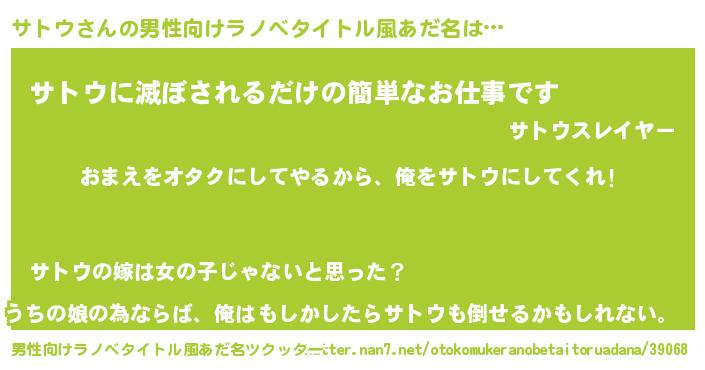 | 女子向けラノベタイトル風あだ名 | 『サトウ夫妻のなれそめ』 |