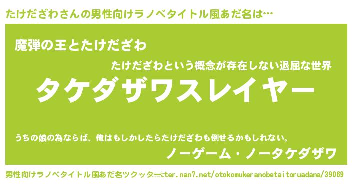 たけだざわさんの男性向けラノベタイトル風あだ名をツクッター!