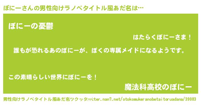 | 伝説のあだ名 | 『古より伝わる吟遊詩人ぼにー』 |