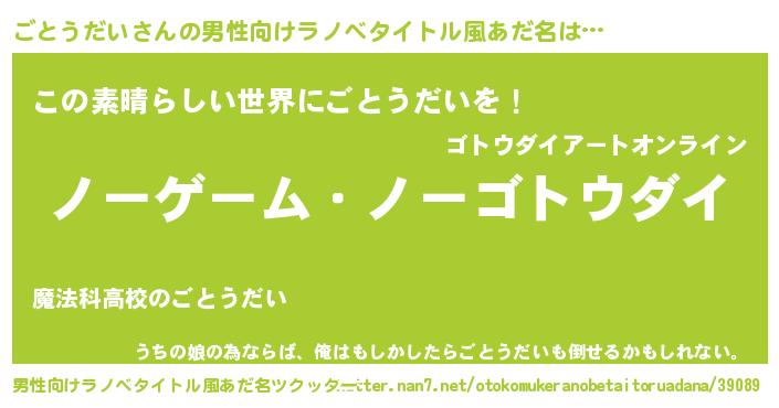| 伝説のあだ名 | 『救世主となる錬金術士ごとうだい』 |