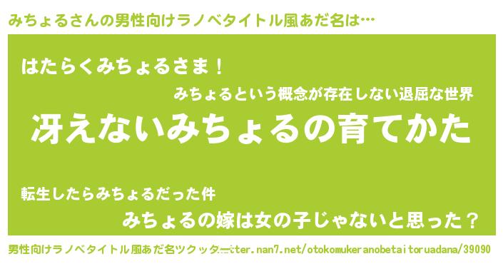 | ヘコむあだ名 | 『みちっぺ』『みちょる(震え声)』 |
