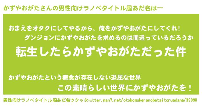 | ヘコむあだ名 | 『かず太郎』『かずやおがた(震え声)』 |