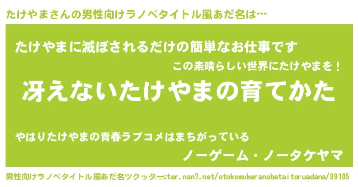 | ヘコむあだ名 | 『豆乳』『たけにー』『たけやま(爆)』 |