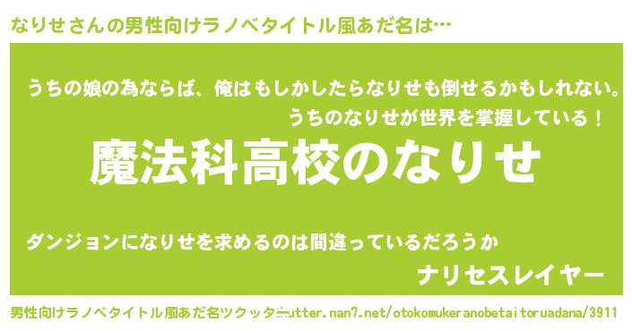 | 女子向けラノベタイトル風あだ名 | 『なりせなんてお断りですっ。』 |