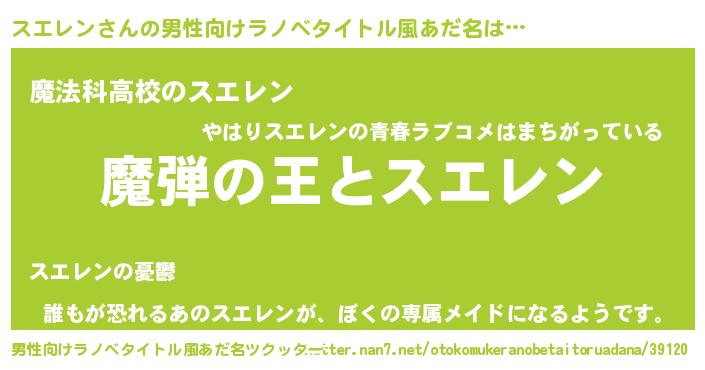 | 女子向けラノベタイトル風あだ名 | 『スエレンが死なない童話 林檎のスエレンの診療簿』 |