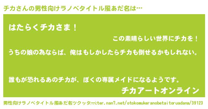 | 女子向けラノベタイトル風あだ名 | 『チカの婚約者』『首の姫と首なしチカ』 |