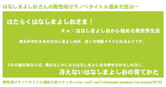 | 胡散臭い通販商品みたいなあだ名 | 『来世でも幸せになれる健康食品…その名も「はなしまよしお」』 |