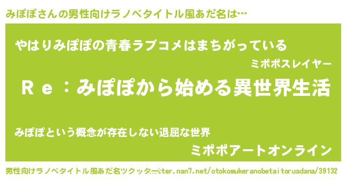| 女子向けラノベタイトル風あだ名 | 『闇のみぽぽ』『みぽぽ伯爵の花嫁』 |