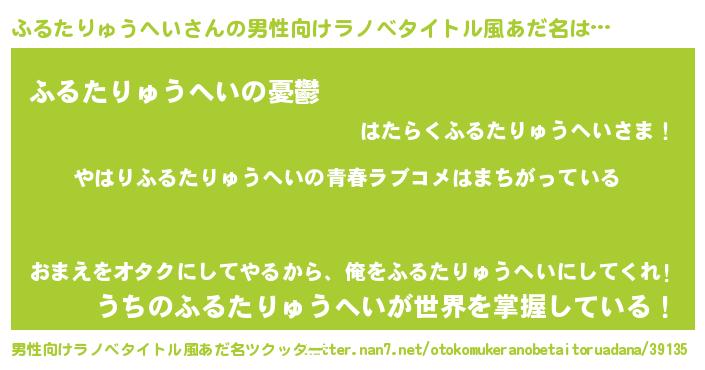| 女子向けラノベタイトル風あだ名 | 『ふるたりゅうへいの雑貨屋さん』 |