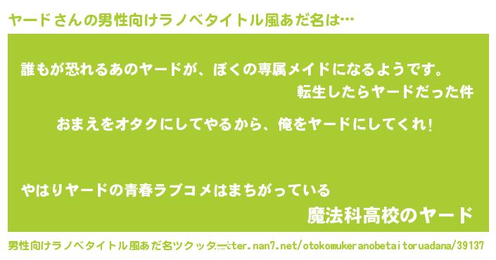 | 女子向けラノベタイトル風あだ名 | 『ヤード恋絵巻』『ヤードの契約王妃』 |