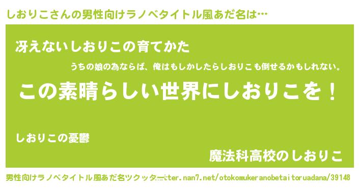 | 意味不明あだ名 | 『住所不定無職しおりこ(3歳)』 |