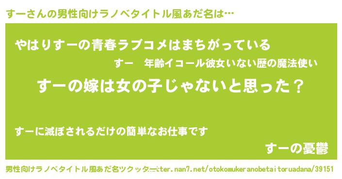 | 胡散臭い通販商品みたいなあだ名 | 『全米が絶賛したサプリメント…その名も「すー」』 |