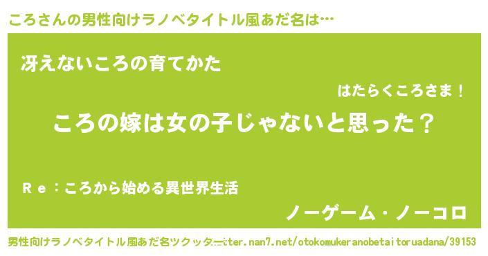 | 女子向けラノベタイトル風あだ名 | 『ころの卵を拾いまして』『闇のころ』 |