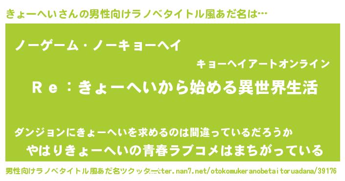 | ヒーロー風カッコイイあだ名 | 『究極戦士キョーヘイ』『幻影騎士キョ』 |