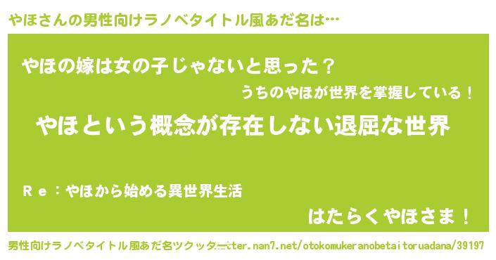 | 胡散臭い通販商品みたいなあだ名 | 『来世でも幸せになれる水素水…その名も「やほ」』 |