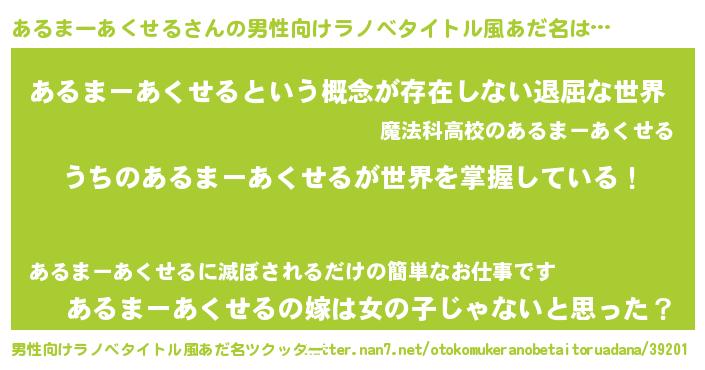 | 女子向けラノベタイトル風あだ名 | 『男装あるまーあくせるの憂鬱な任務』 |